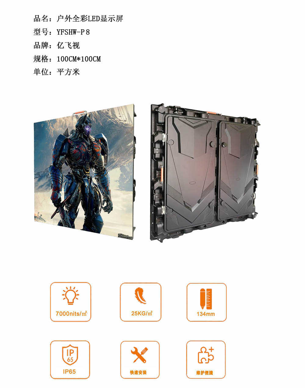亿飞视户外P8全彩LED显示屏 市场指导价:15000元/平米 品牌:亿飞视